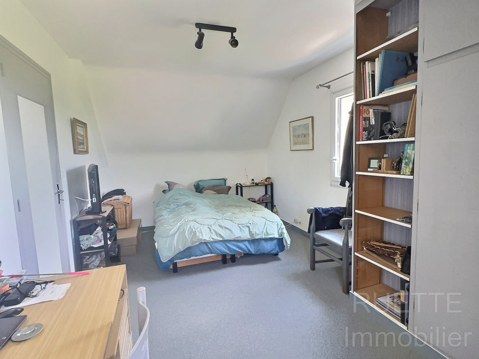 Au premier étage : deux grandes chambres de 15 m², une chambre de 10 m², une salle de bains.